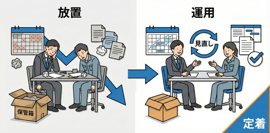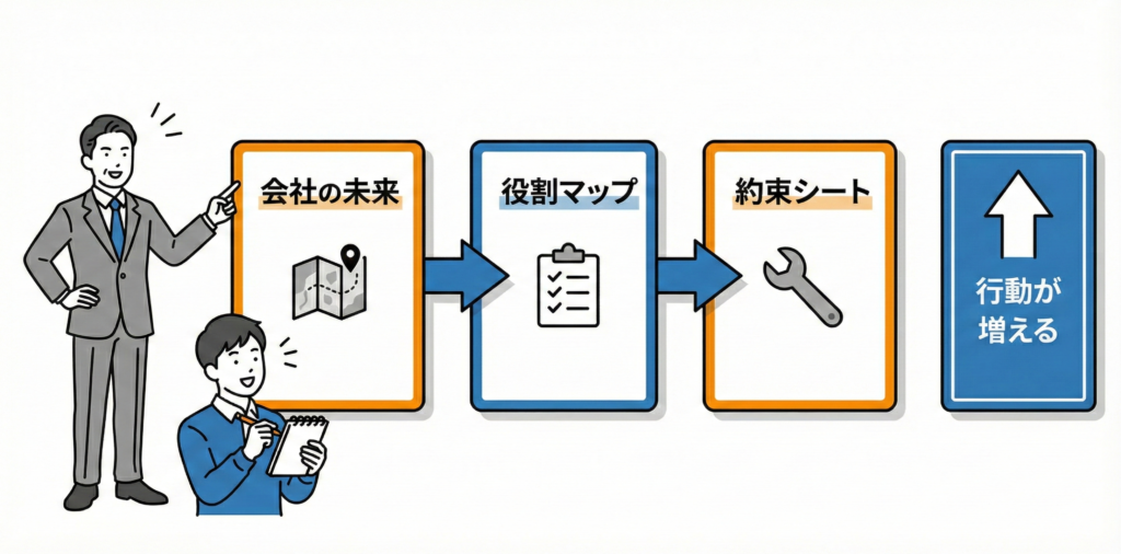 若手の離職防止とは、辞めたい気持ちを気合で抑えることではありません。会社側が「ここにいれば成長できる」という根拠を作り、本人の行動につながる約束に落とすことです。
