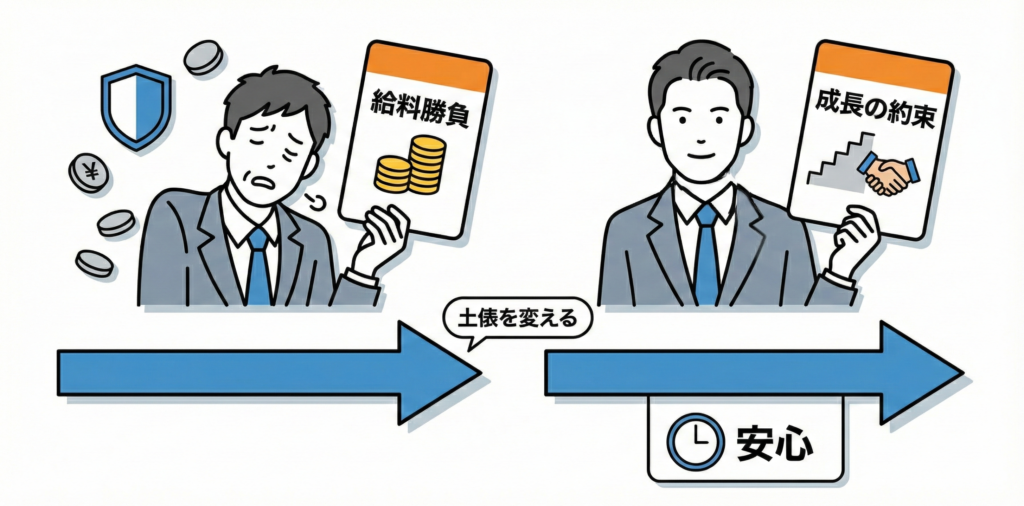 このループが起きる理由はシンプルです。若手の視点では「今の会社に残る理由」が条件以外に見えないからです。