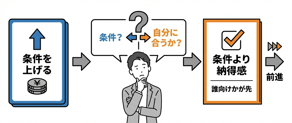 年収が高いのに応募が弱い求人は、仕事内容・期待役割・評価のされ方がぼやけています。条件は目を引きますが、最後の意思決定は「納得感」が握ります。