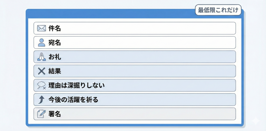 • 不採用通知は短く、結果は明確に書きます